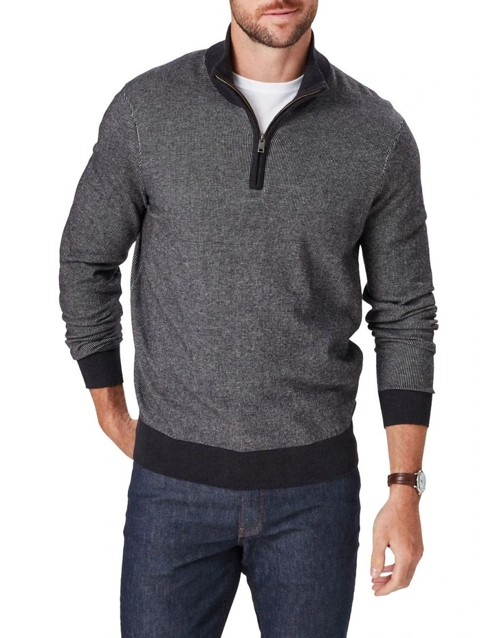 An updated look to our much loved ย High Flex Half Zip Knit, This birdseye pattern knit is known for its comfort and durability. A lightweight stretch knit jumper with half zip styling and contrast neck cuff and hem features. A dress smart knit that can be worn over a shirt or t-shirt and paired together with your favourite chinos.ย