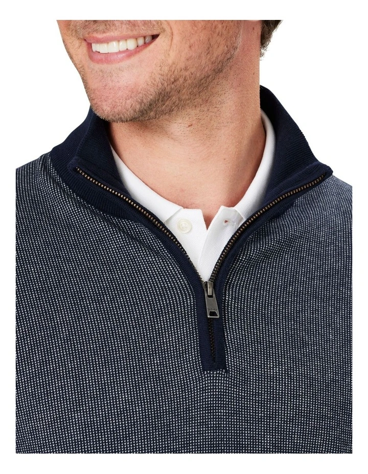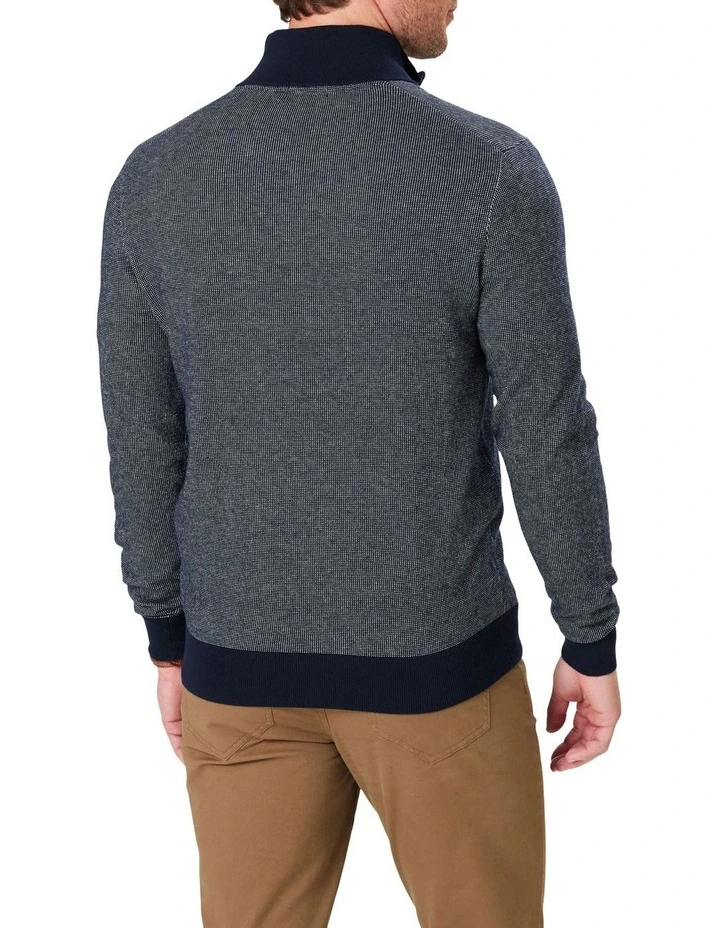An updated look to our much loved ย High Flex Half Zip Knit, This birdseye pattern knit is known for its comfort and durability. A lightweight stretch knit jumper with half zip styling and contrast neck cuff and hem features. A dress smart knit that can be worn over a shirt or t-shirt and paired together with your favourite chinos.ย