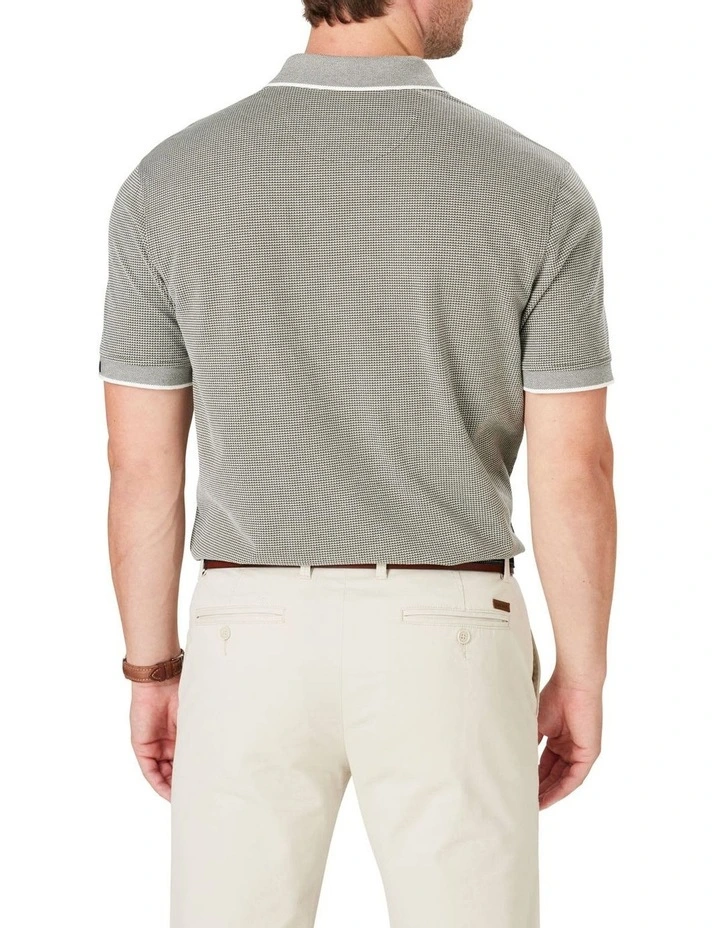 Be weekendย ready withย our Smart Jacquard Polo. Constructed from soft to touch Egyptian Cotton giving it a luxurious look and feel for quality comfort. Featuring a birdseye ribbed collar with contrast edges and two button placket, this men’s polo offers lightweight and breathable comfort that is equally functional as it stylish. ย ย ย ย