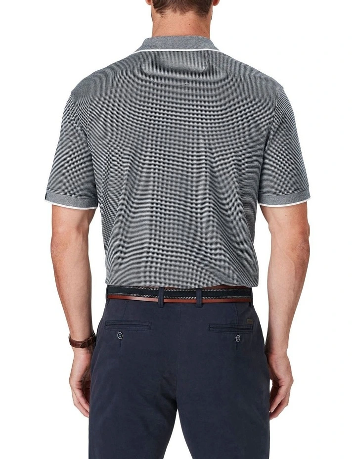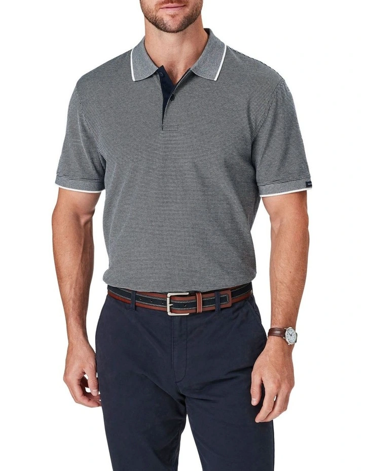 Be weekend ready with our Smart Jacquard Polo. Constructed from soft to touch Egyptian Cotton giving it a luxurious look and feel for quality comfort. Featuring a birdseye ribbed collar with contrast edges and two button placket, this men’s polo offers lightweight and breathable comfort that is equally functional as it stylish.